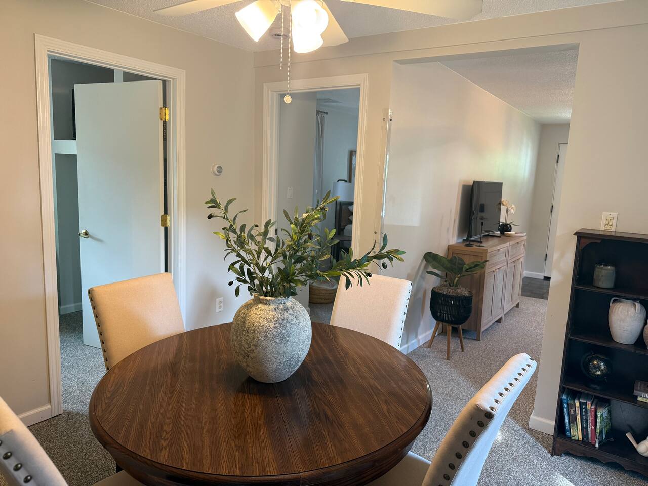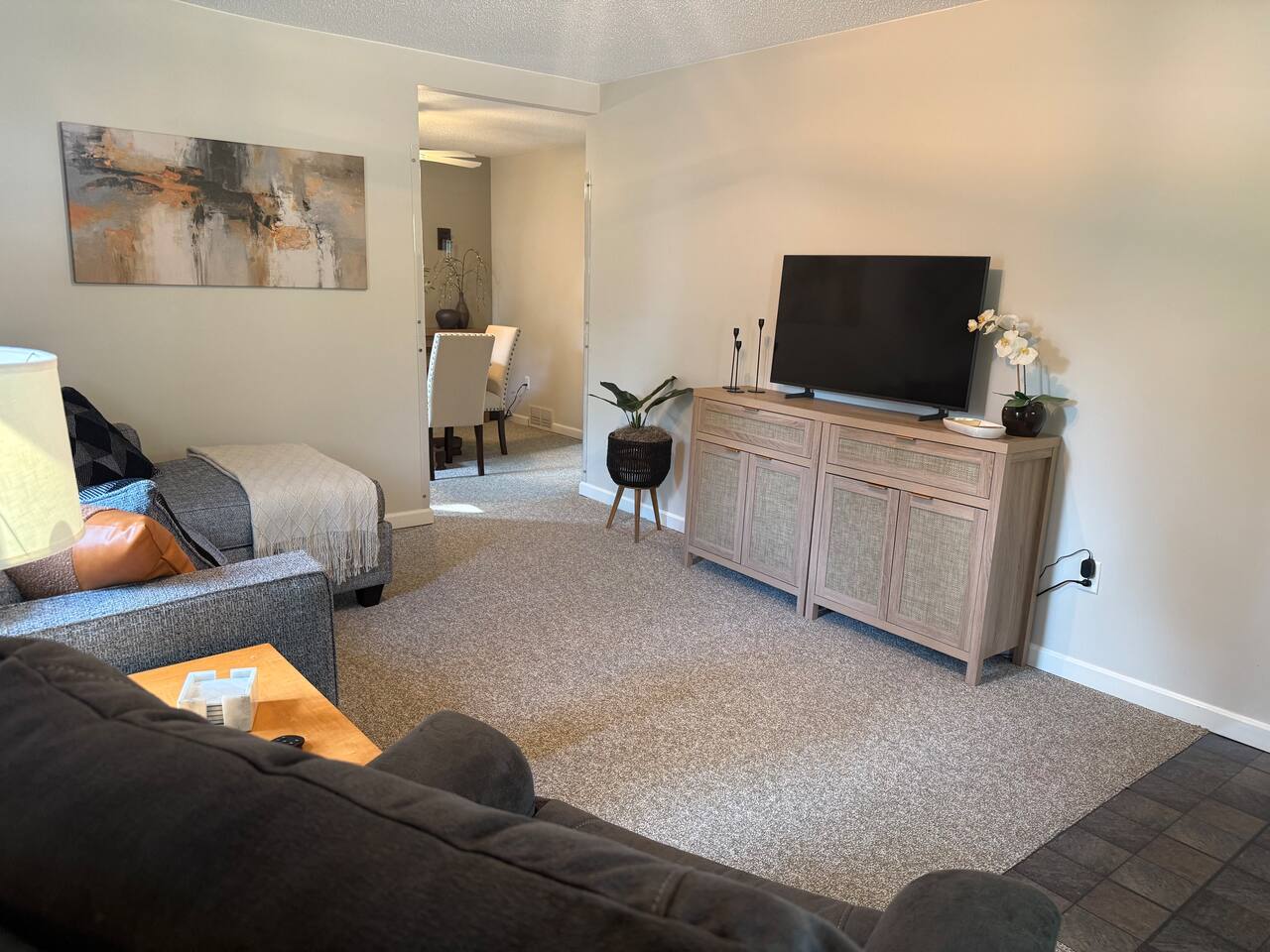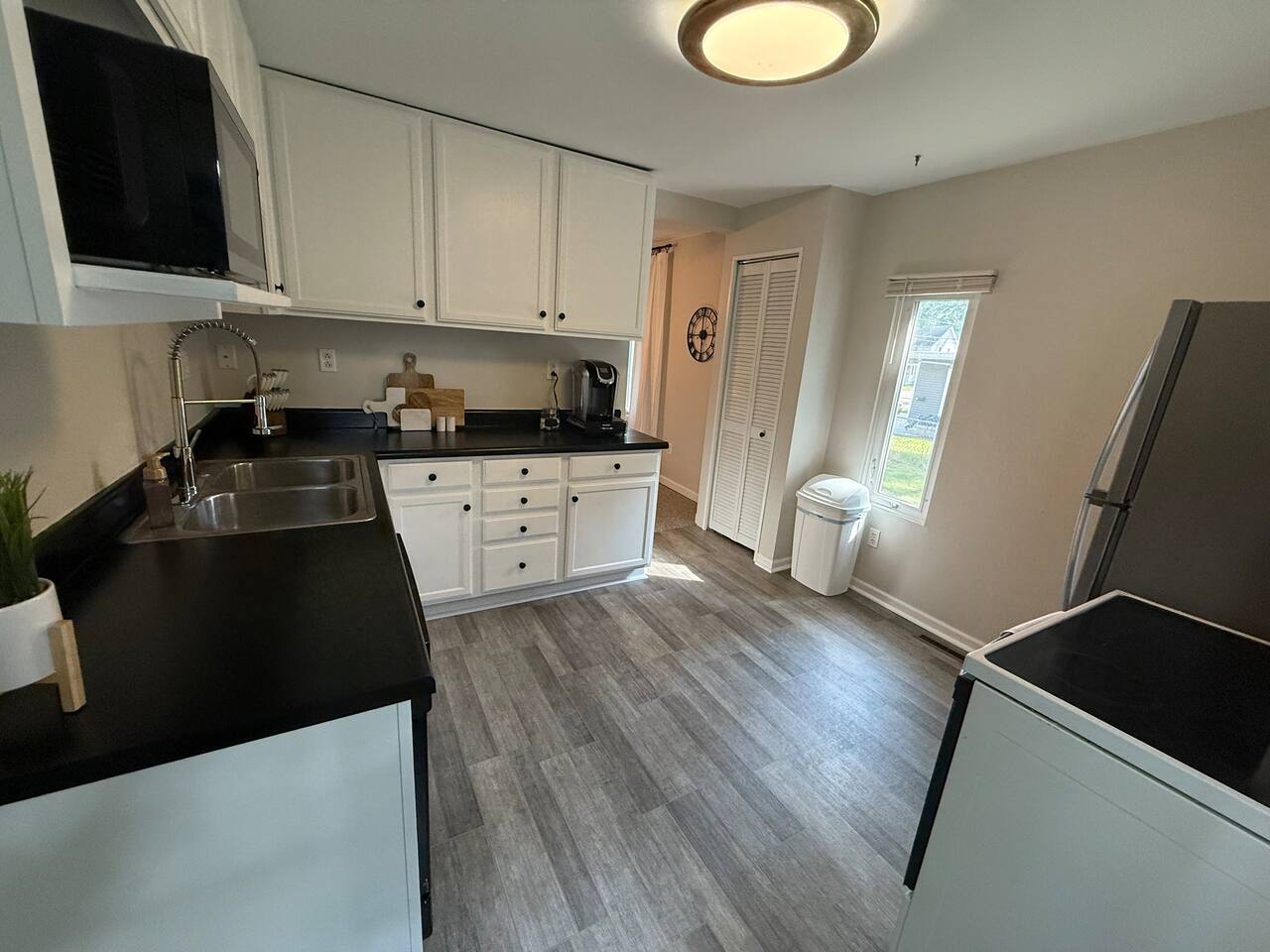 Welcome to downtown Midland, our home has been newly remodeled in June of 2025, and has been designed to accommodate your every need. Walk downtown or even to Dow Gardens, this home is close to so much of what makes Midland special. Inside you'll find a carefully designed two bedroom 1 bath home, with comfortable furnishings throughout. Each bedroom features a queen sized bed and the livingroom includes a smart TV. Our backyard is fenced in and private with a comfortable outdoor seating area.