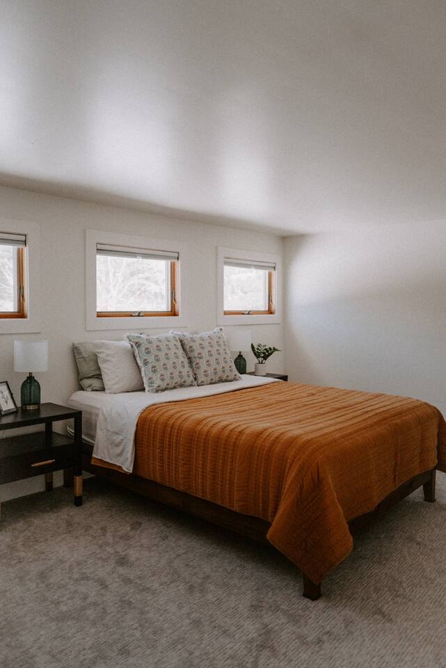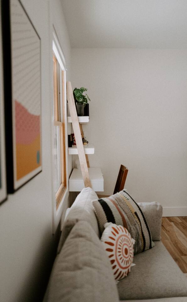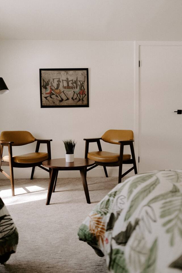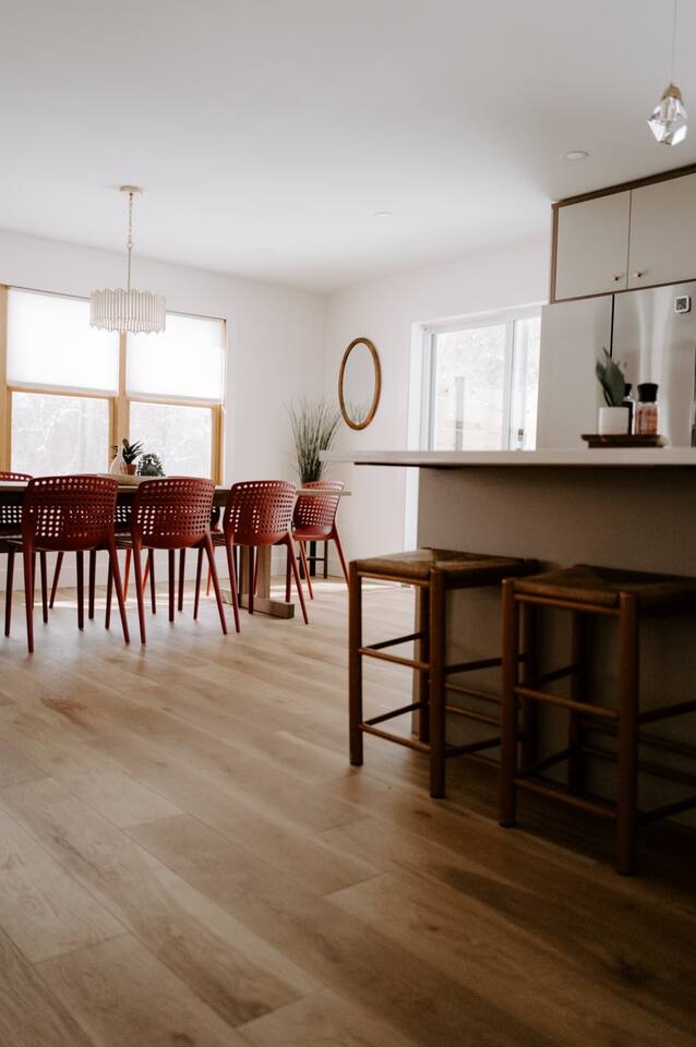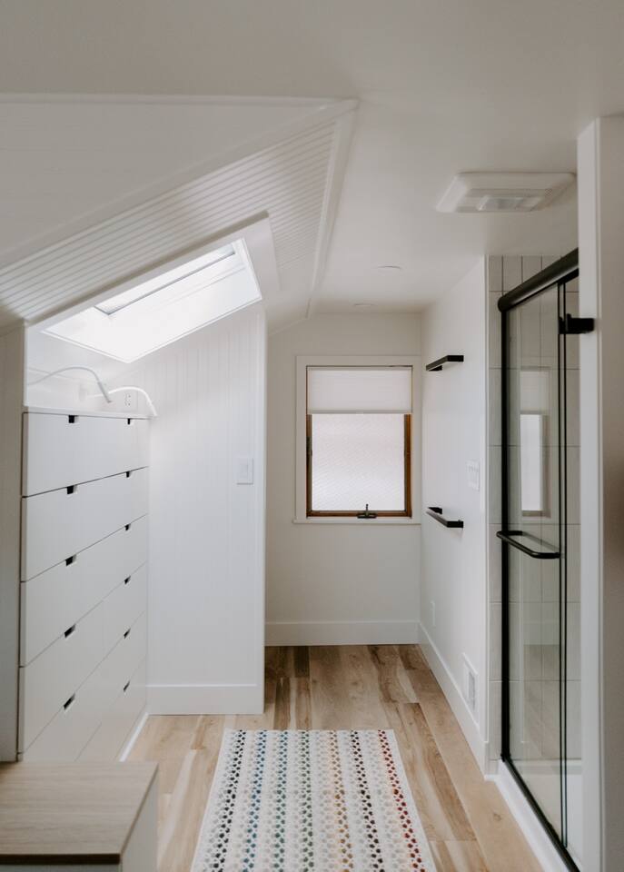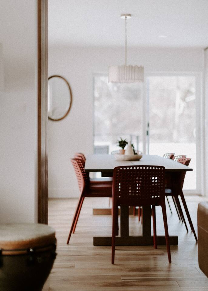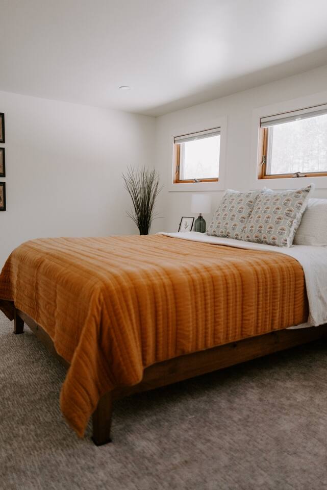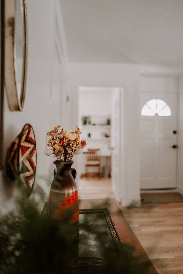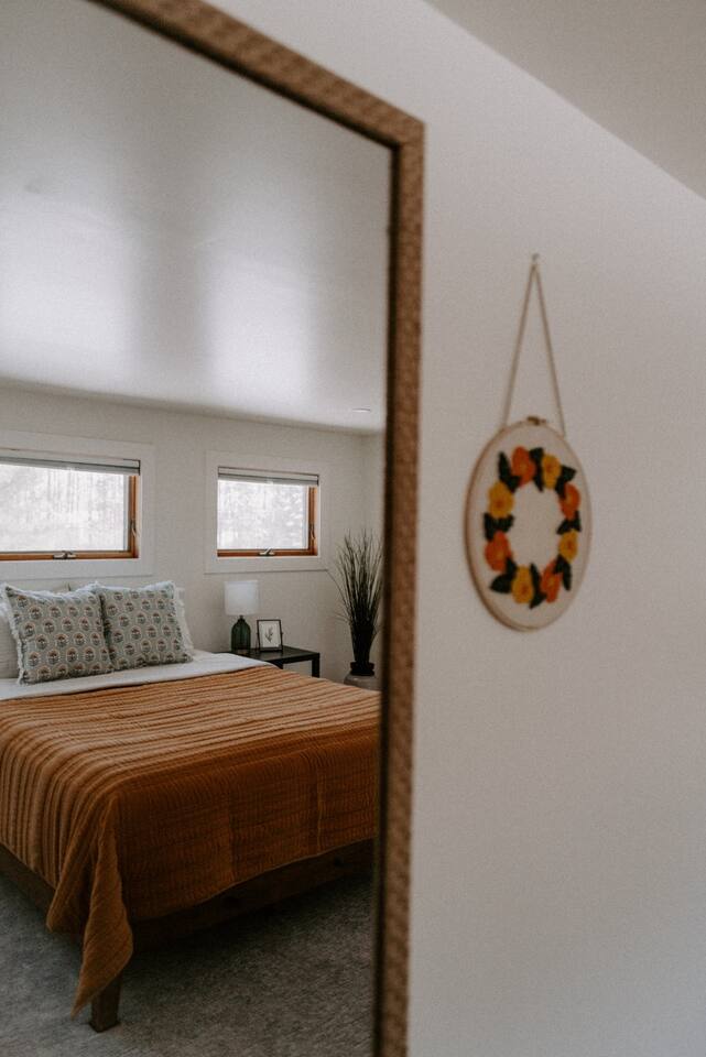 This house has been thoughtfully updated to create a colorful, bright, and open space that we know you'll love. The living room, kitchen, and dining room are all on the main floor. The main floor also has a spacious laundry room, the first bathroom, and an office. The office has a TV, comfortable couch, and a play space for the kids. Just off the kitchen is a sliding glass door that will lead you to the back deck. The deck and the yard are both very spacious making it a great spot to serve dinner in the summer. After dinner head out to the fire pit to toast some marshmallows for s'mores. Up stairs you'll find all three bedrooms and two more full bathrooms. The main bedroom has a queen bed and large ensuite on one side with a walk-in shower and double vanity and another dedicated work space. The kids bedroom has an extra twin bed under each bed and extra linens to accommodate 4 people in that room if needed. The third bedroom has a queen bed with a large couch and large closet. That bedroom is directly across from the third bathroom that also offers a walk-in shower. There is a lot to love here both indoor and outdoor. We think you'll love the privacy, space, and playful design, all while being a 3 minute drive to the mall area.