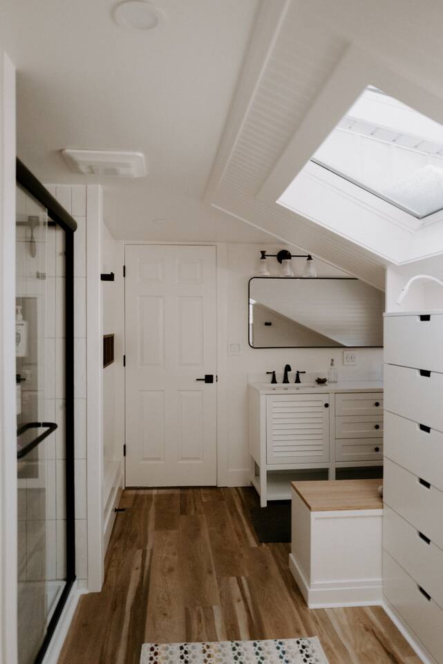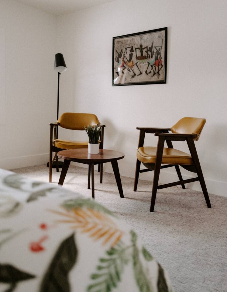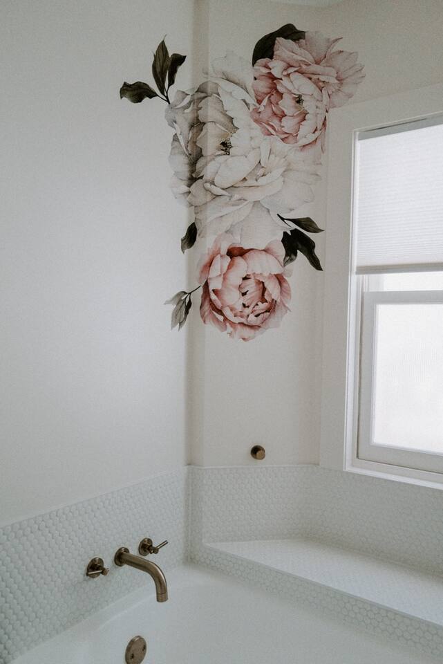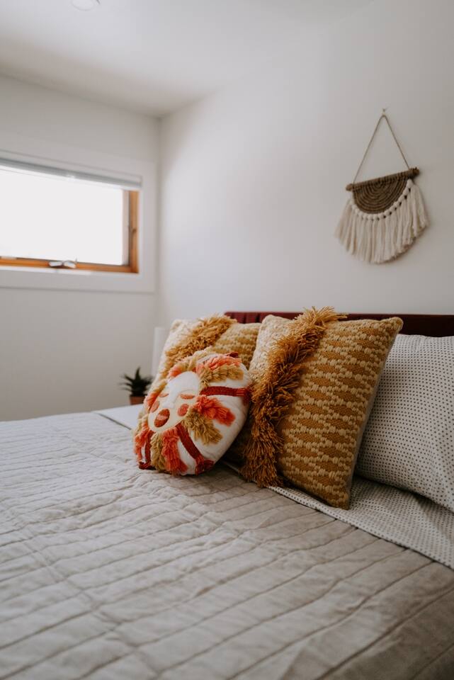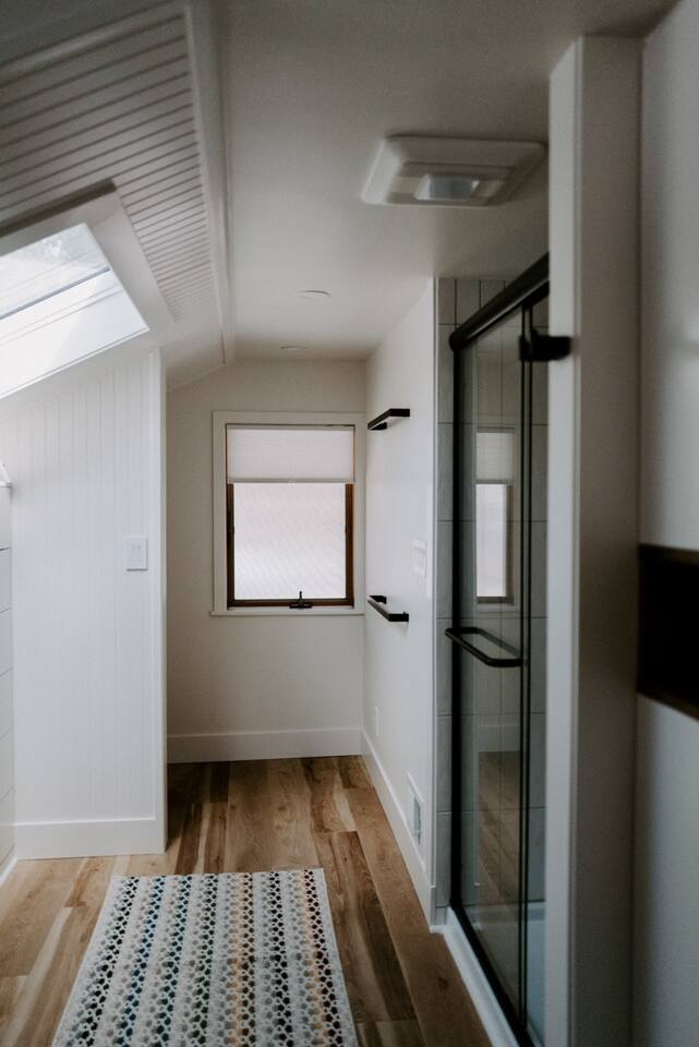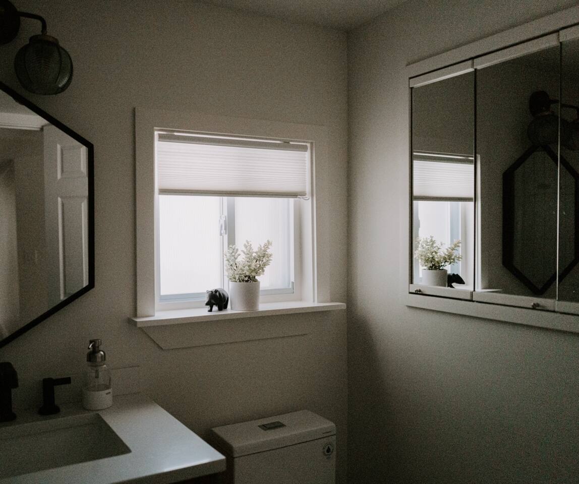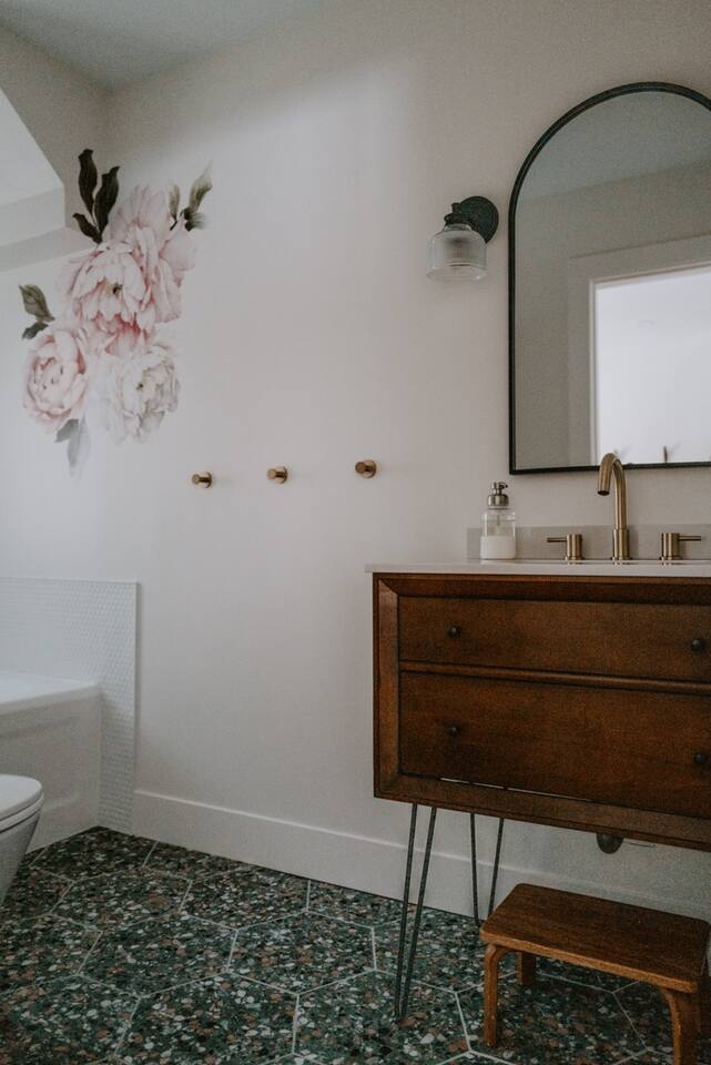 This house has been thoughtfully updated to create a colorful, bright, and open space that we know you'll love. The living room, kitchen, and dining room are all on the main floor. The main floor also has a spacious laundry room, the first bathroom, and an office. The office has a TV, comfortable couch, and a play space for the kids. Just off the kitchen is a sliding glass door that will lead you to the back deck. The deck and the yard are both very spacious making it a great spot to serve dinner in the summer. After dinner head out to the fire pit to toast some marshmallows for s'mores. Up stairs you'll find all three bedrooms and two more full bathrooms. The main bedroom has a queen bed and large ensuite on one side with a walk-in shower and double vanity and another dedicated work space. The kids bedroom has an extra twin bed under each bed and extra linens to accommodate 4 people in that room if needed. The third bedroom has a queen bed with a large couch and large closet. That bedroom is directly across from the third bathroom that also offers a walk-in shower. There is a lot to love here both indoor and outdoor. We think you'll love the privacy, space, and playful design, all while being a 3 minute drive to the mall area.