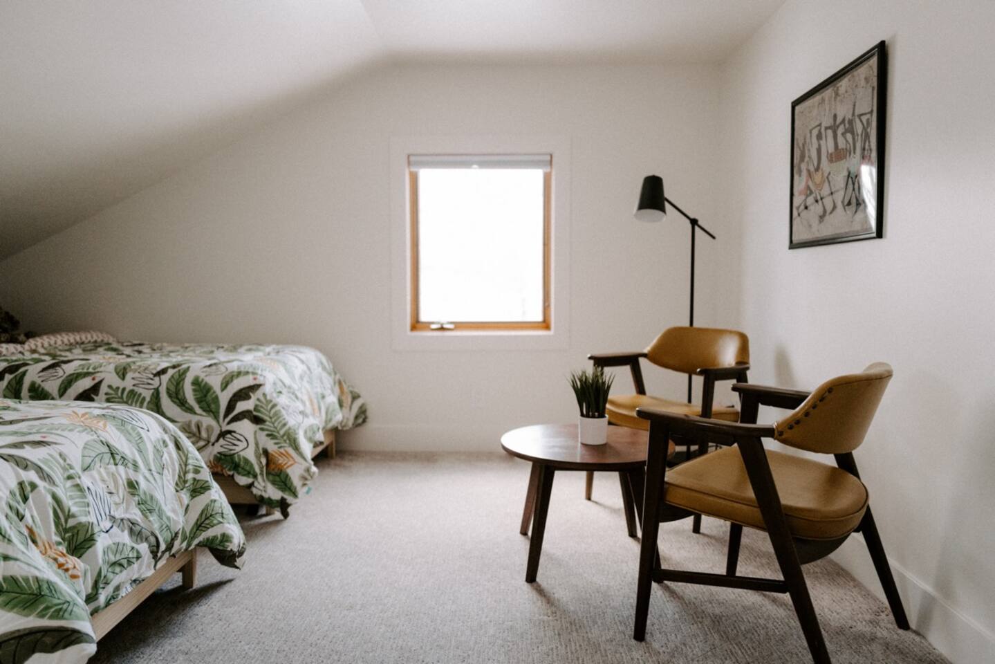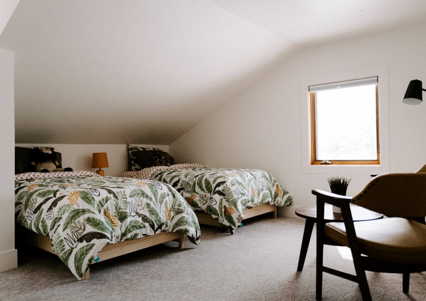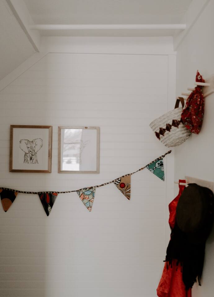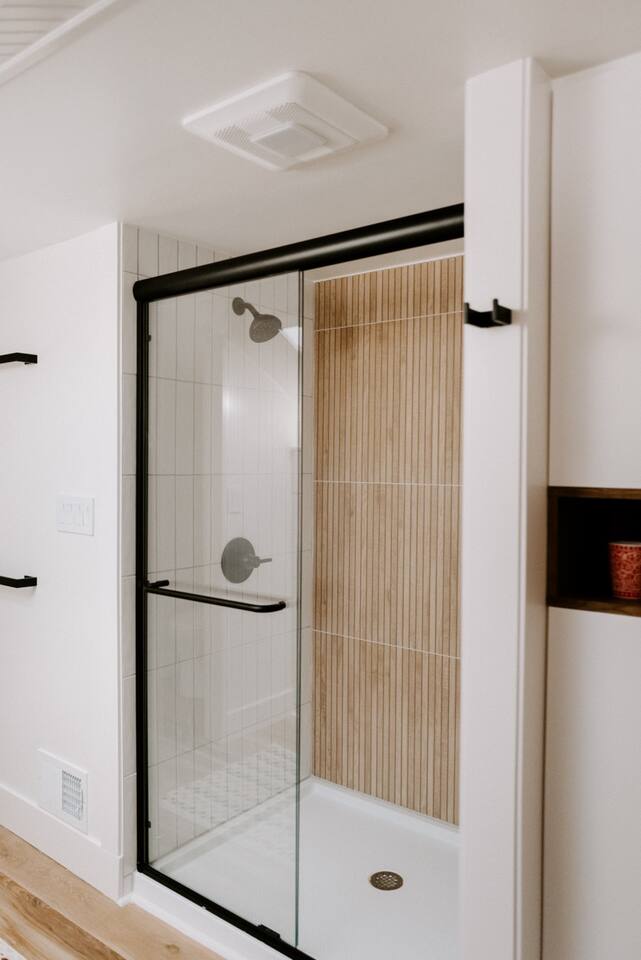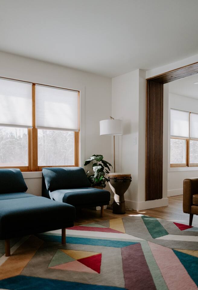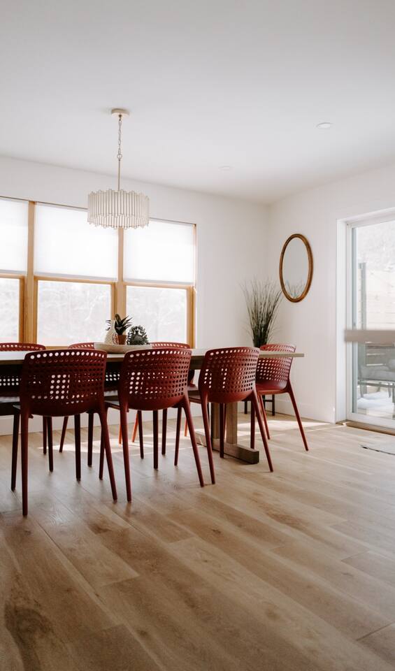 This house has been thoughtfully updated to create a colorful, bright, and open space that we know you'll love. The living room, kitchen, and dining room are all on the main floor. The main floor also has a spacious laundry room, the first bathroom, and an office. The office has a TV, comfortable couch, and a play space for the kids. Just off the kitchen is a sliding glass door that will lead you to the back deck. The deck and the yard are both very spacious making it a great spot to serve dinner in the summer. After dinner head out to the fire pit to toast some marshmallows for s'mores. Up stairs you'll find all three bedrooms and two more full bathrooms. The main bedroom has a queen bed and large ensuite on one side with a walk-in shower and double vanity and another dedicated work space. The kids bedroom has an extra twin bed under each bed and extra linens to accommodate 4 people in that room if needed. The third bedroom has a queen bed with a large couch and large closet. That bedroom is directly across from the third bathroom that also offers a walk-in shower. There is a lot to love here both indoor and outdoor. We think you'll love the privacy, space, and playful design, all while being a 3 minute drive to the mall area.