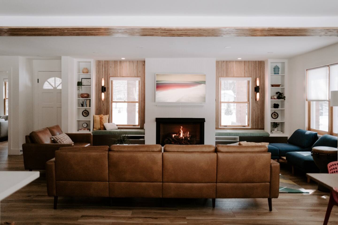 Convenient location that’s three minutes from the middle of town with an extra large yard and plenty of parking. This spacious house has been renovated from head to toe and includes all the convenience of home while feeling like you're on vacation. You'll love flipping a switch to have a warm, cozy fire while finding something to watch on the Samsung Frame TV. You'll definitely want to spend some time out on the deck and in the huge lawn during those warm days.