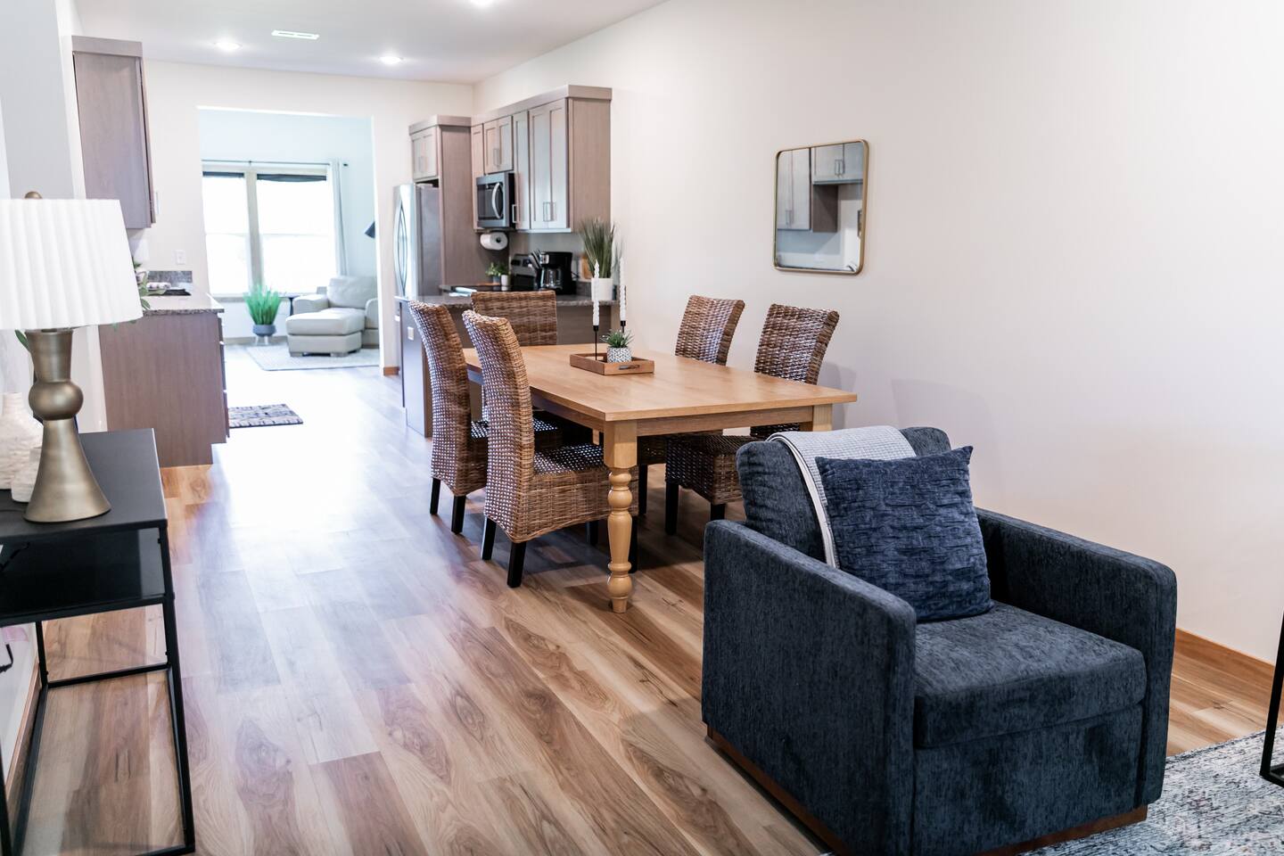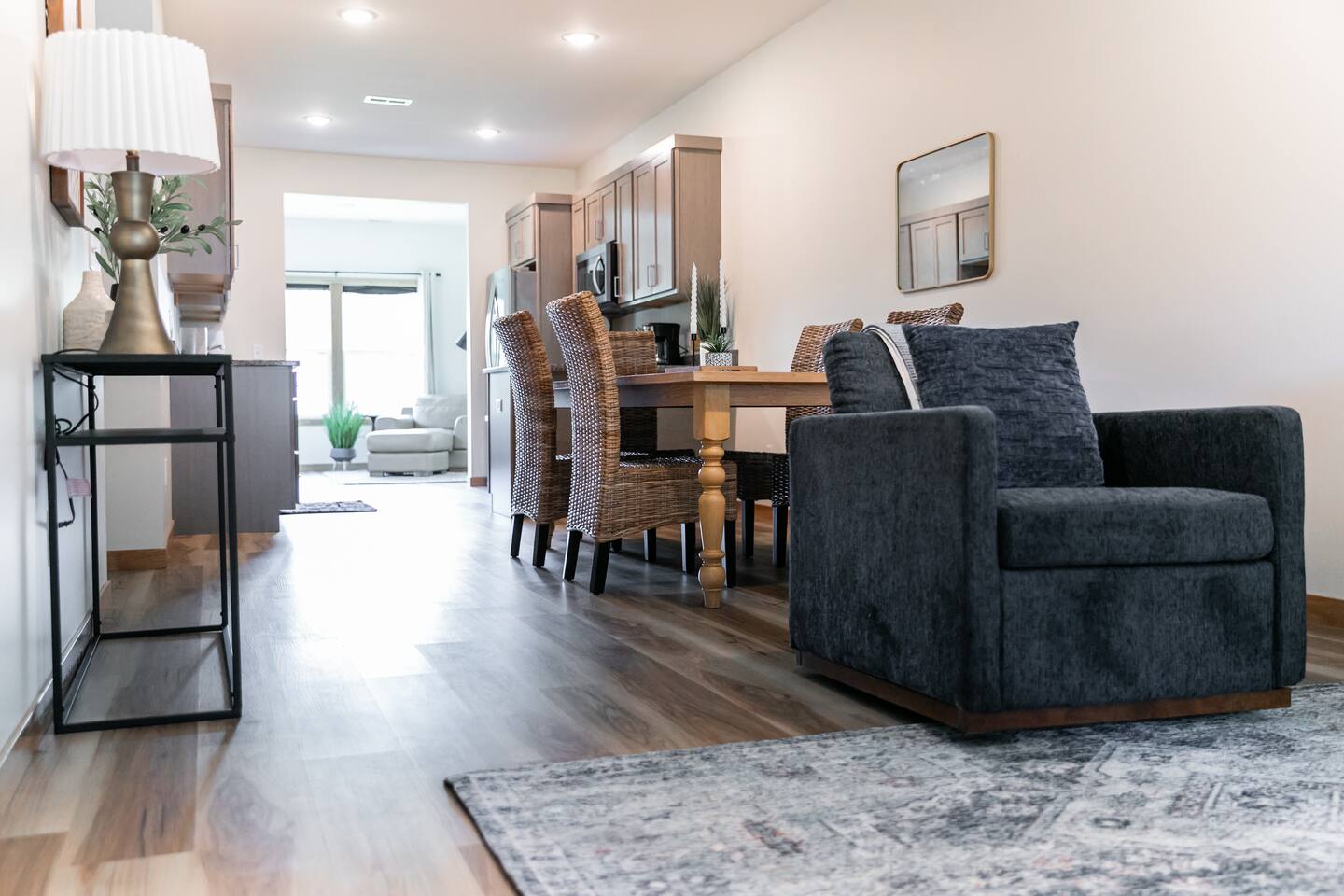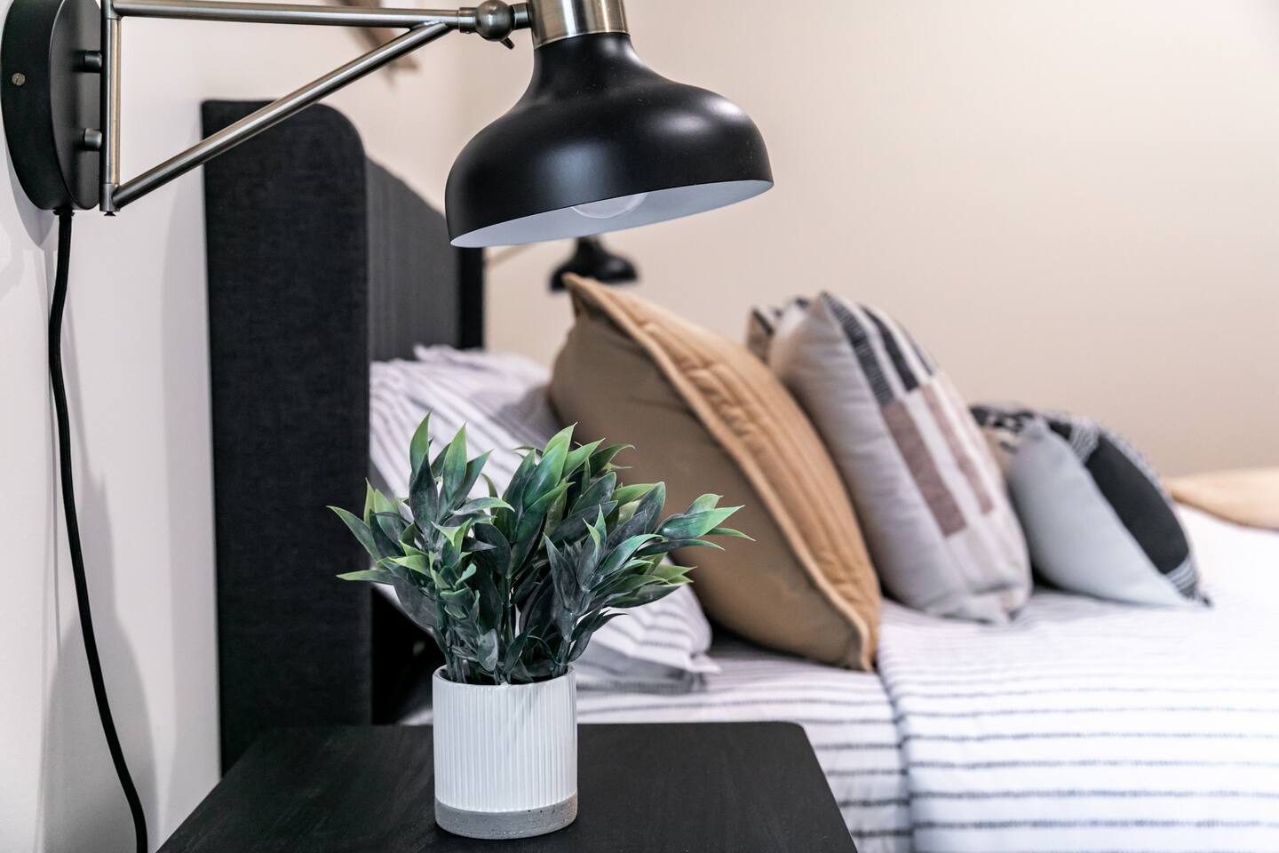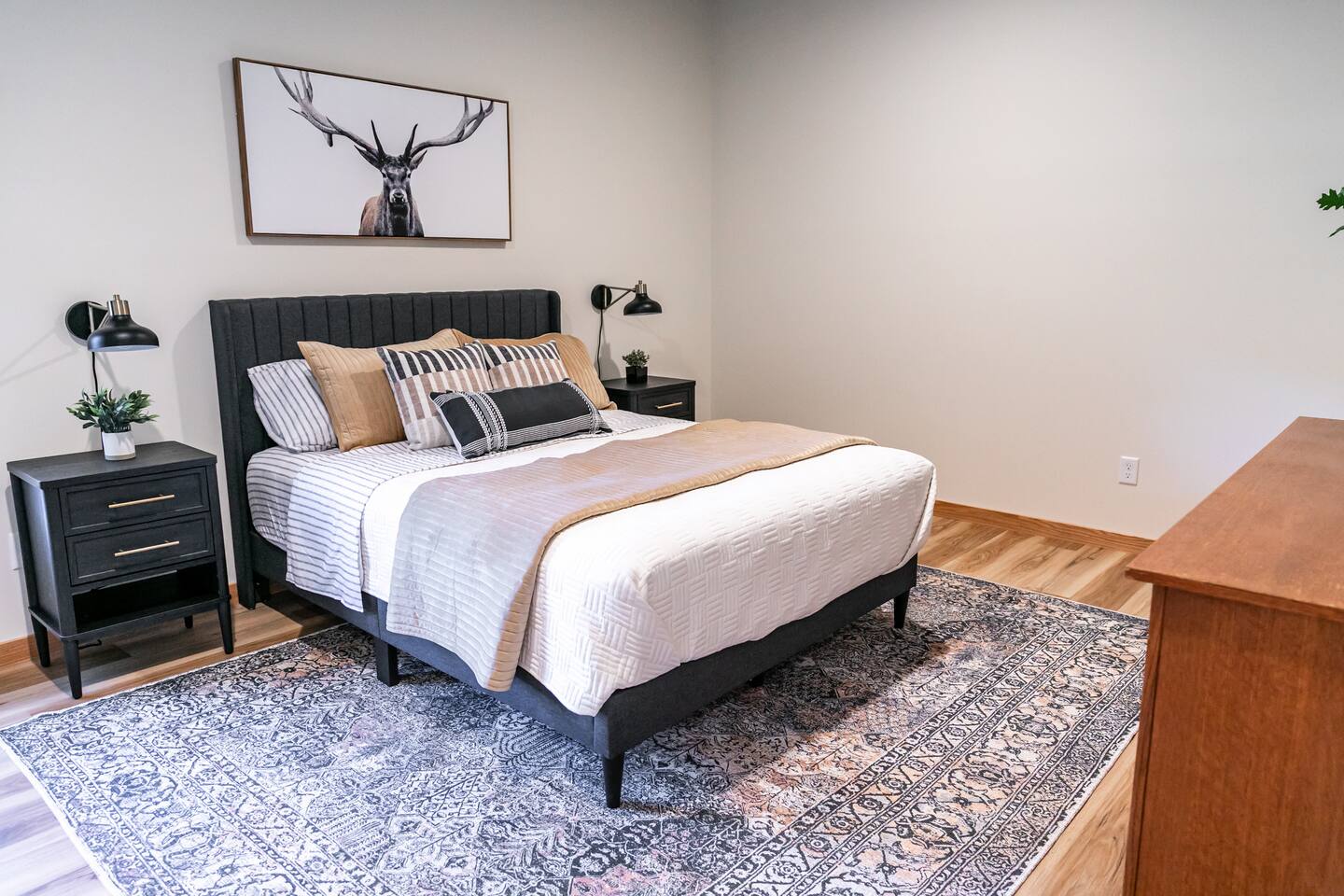Welcome to your private, modern sanctuary — a stunning newly constructed (2024) luxury home where comfort meets high-end sophistication. Perfectly tailored for seasoned travelers; this 2-bedroom, 2-bath residence features premium design, dedicated office space, and an elegant outdoor patio—all paired with the ease of a two-car garage. Each bedroom features a queen bed. The primary suite offers an ensuite bath with well-laid-out finishes, walk-in shower, and vanity, as well as a walk-in closet.