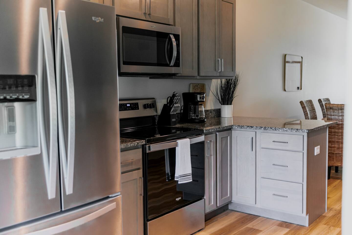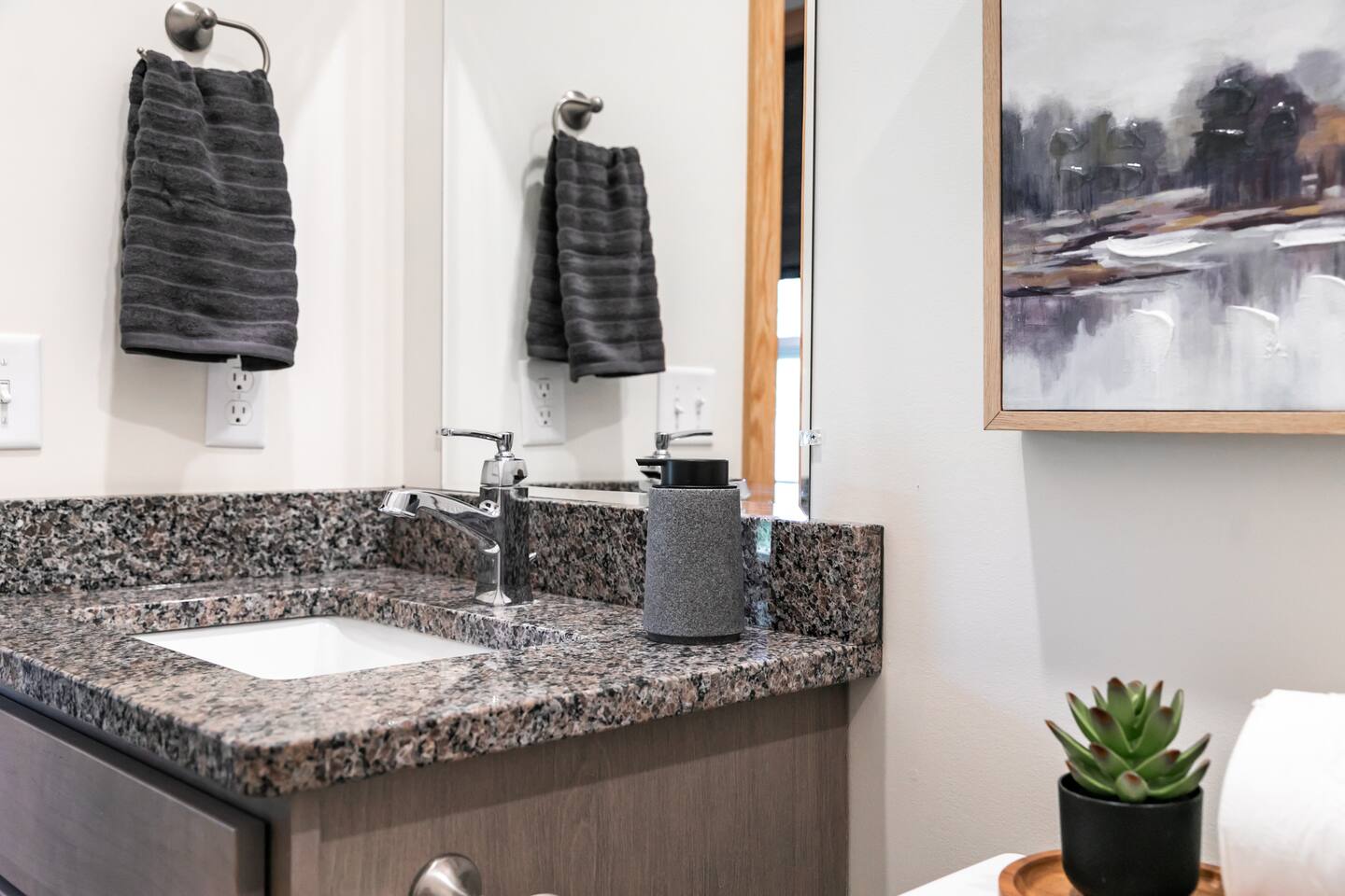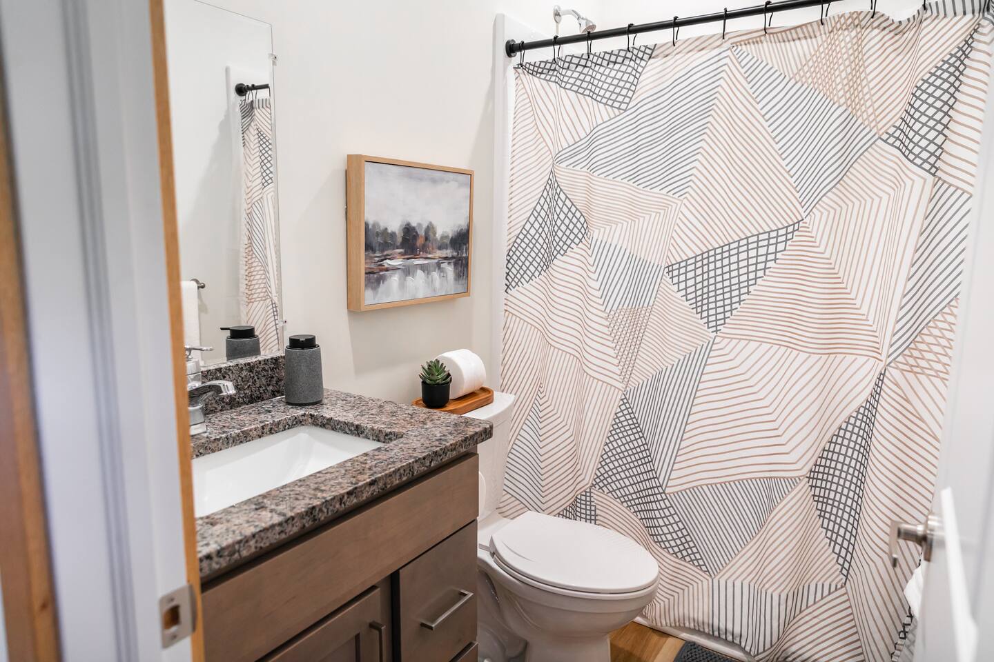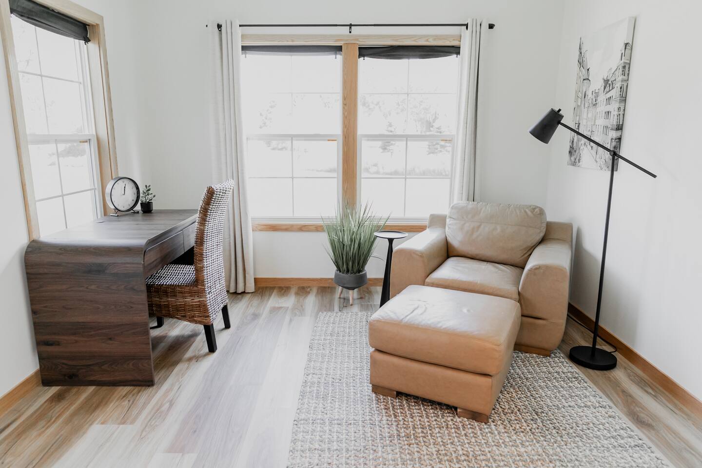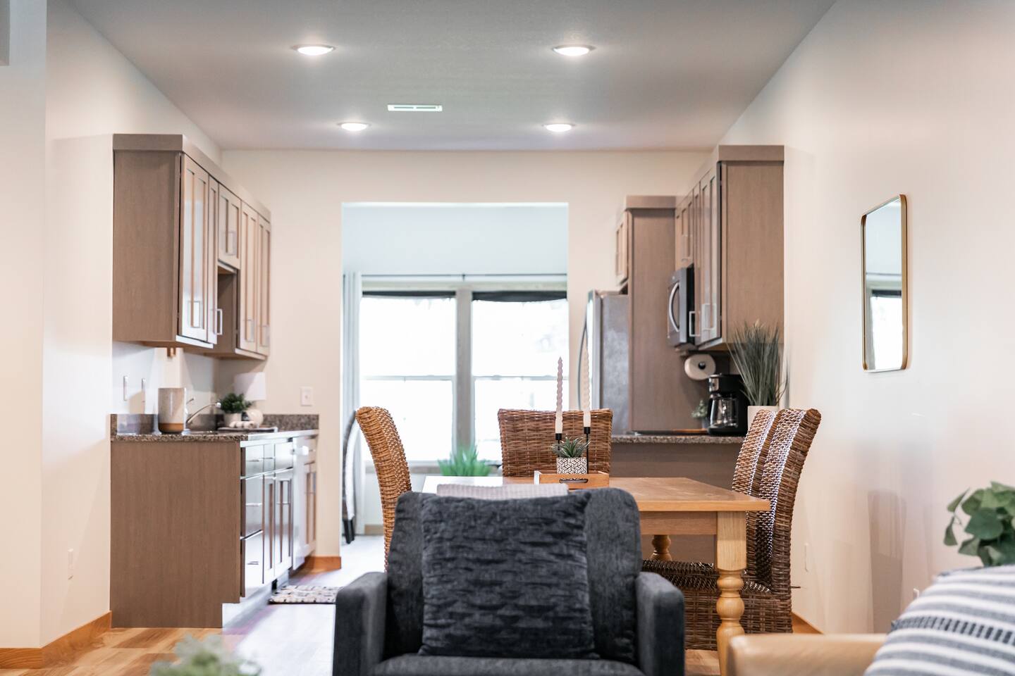 Welcome to your private, modern sanctuary — a stunning newly constructed (2024) luxury home where comfort meets high-end sophistication. Perfectly tailored for seasoned travelers; this 2-bedroom, 2-bath residence features premium design, dedicated office space, and an elegant outdoor patio—all paired with the ease of a two-car garage. Each bedroom features a queen bed. The primary suite offers an ensuite bath with well-laid-out finishes, walk-in shower, and vanity, as well as a walk-in closet.