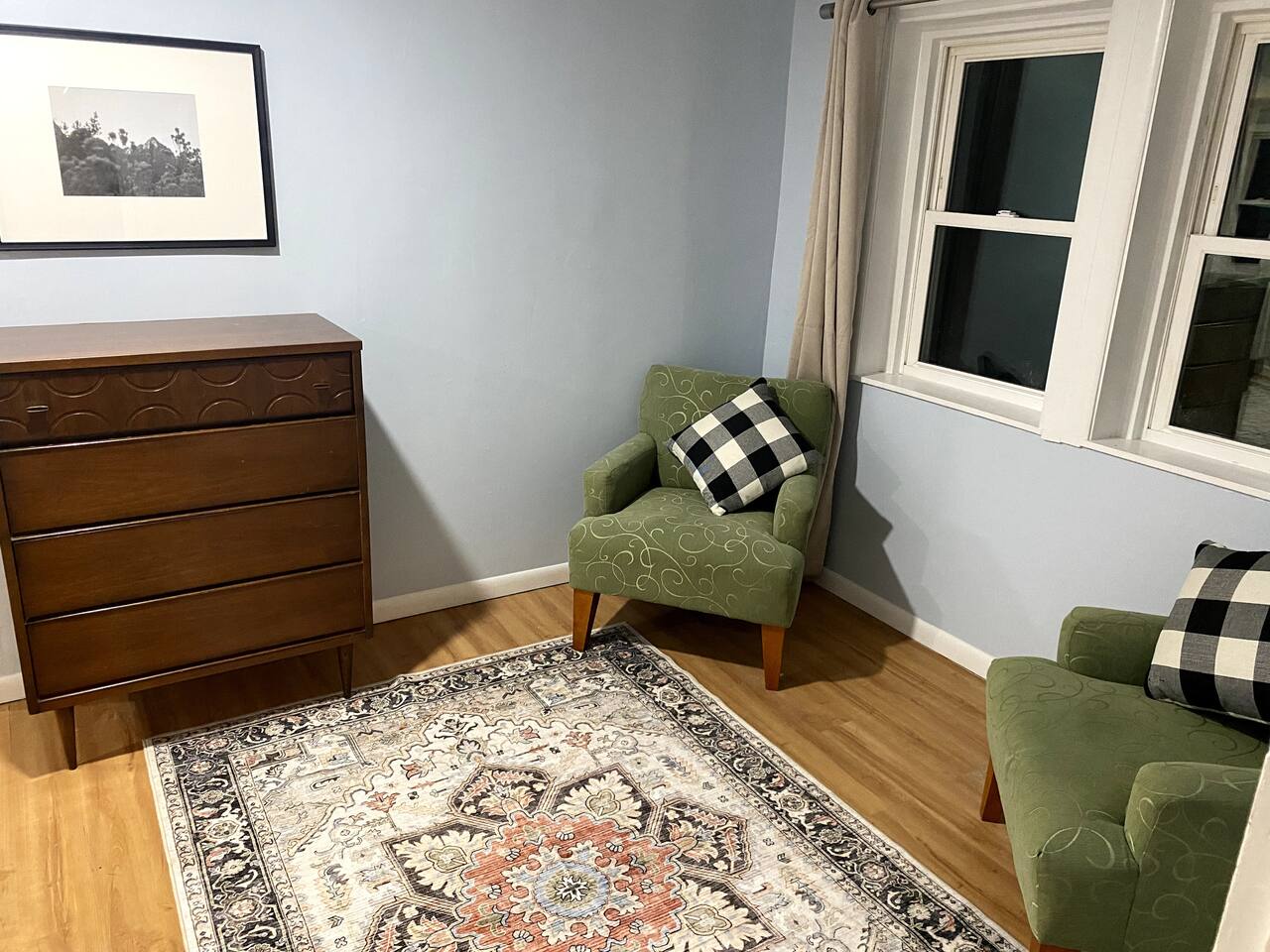 Our home is a 1320 square foot brick ranch with three bedrooms, and one bathroom. Its an open concept from the kitchen, through the dining area and ending at the living room. Two of the bedrooms are roughly 10x10 feet, and the largest bedroom is around 300 square feet with an additional 8x8 foot office accessed within the room. Distance to: The Tridge - 5 mins Loons Stadium Downtown Midland - 5 mins Northwood University - 5 mins MyMichigan Medical Center - 8 mins Dow Chemical South Gate - 13 mins Hemlock Semiconductor - 27 mins