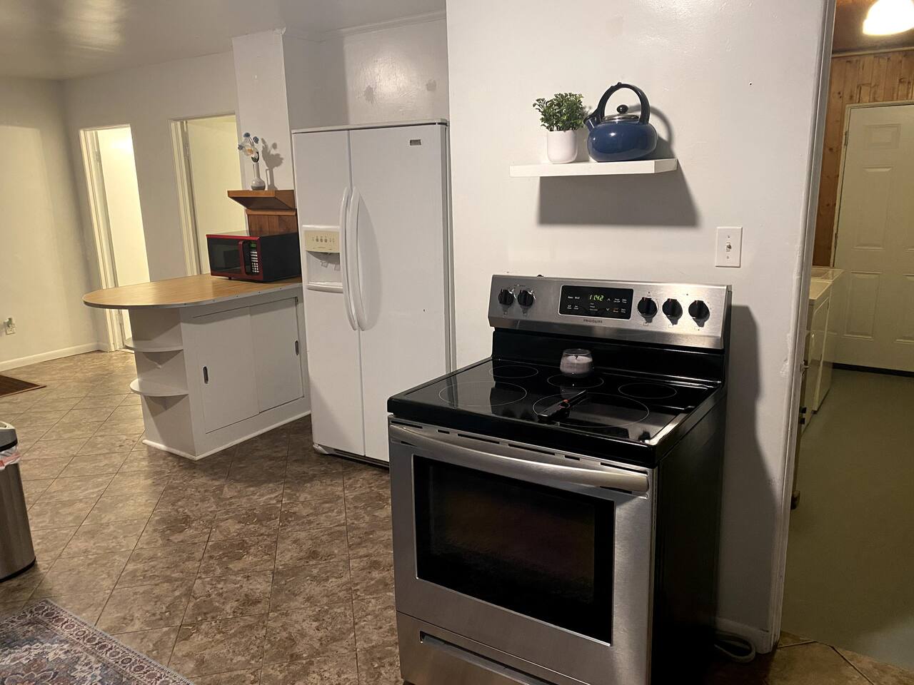 Welcome to our efficiency unit designed for traveling workers, two miles from downtown Midland. Our goal was comfortable and practical in this 3 bedroom 1 bath home, with an additional office. This home is close to everything Midland has to offer and has plenty of parking for 4 vehicles. Our fully equipped kitchen, laundry room, comfortable beds, and living room with smart tv will make your landing place home for as long as you need.