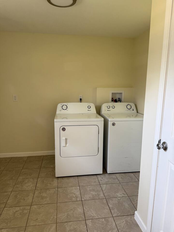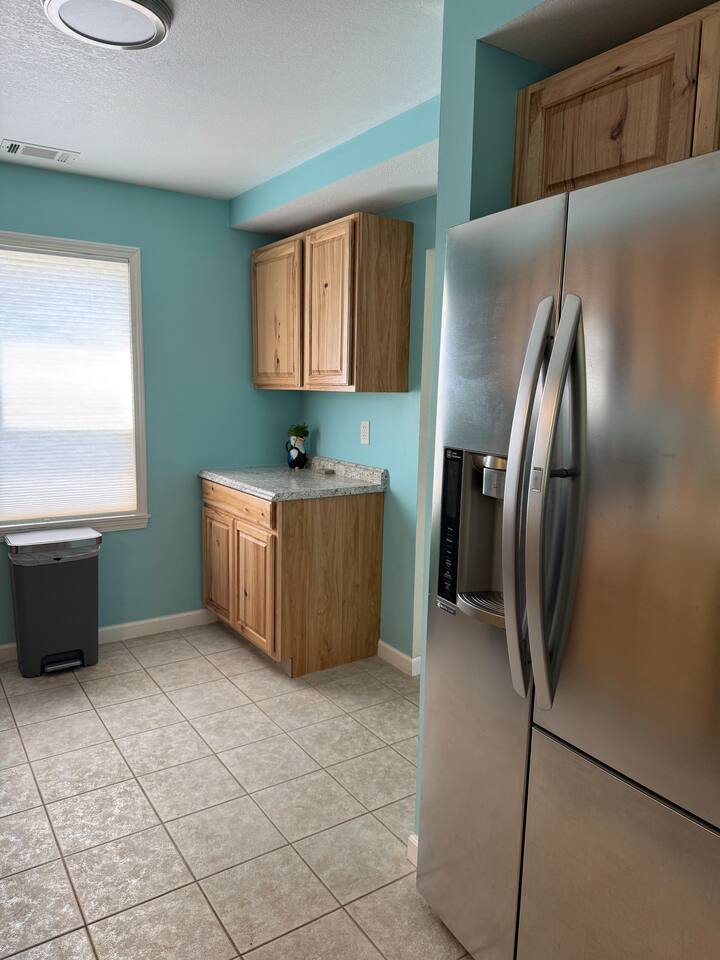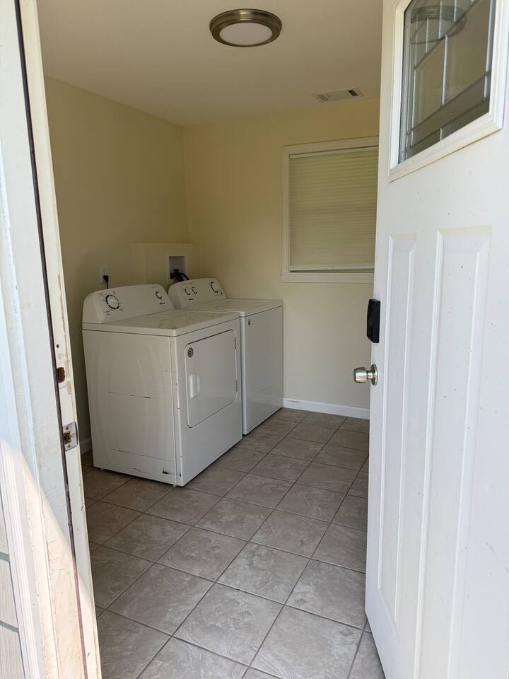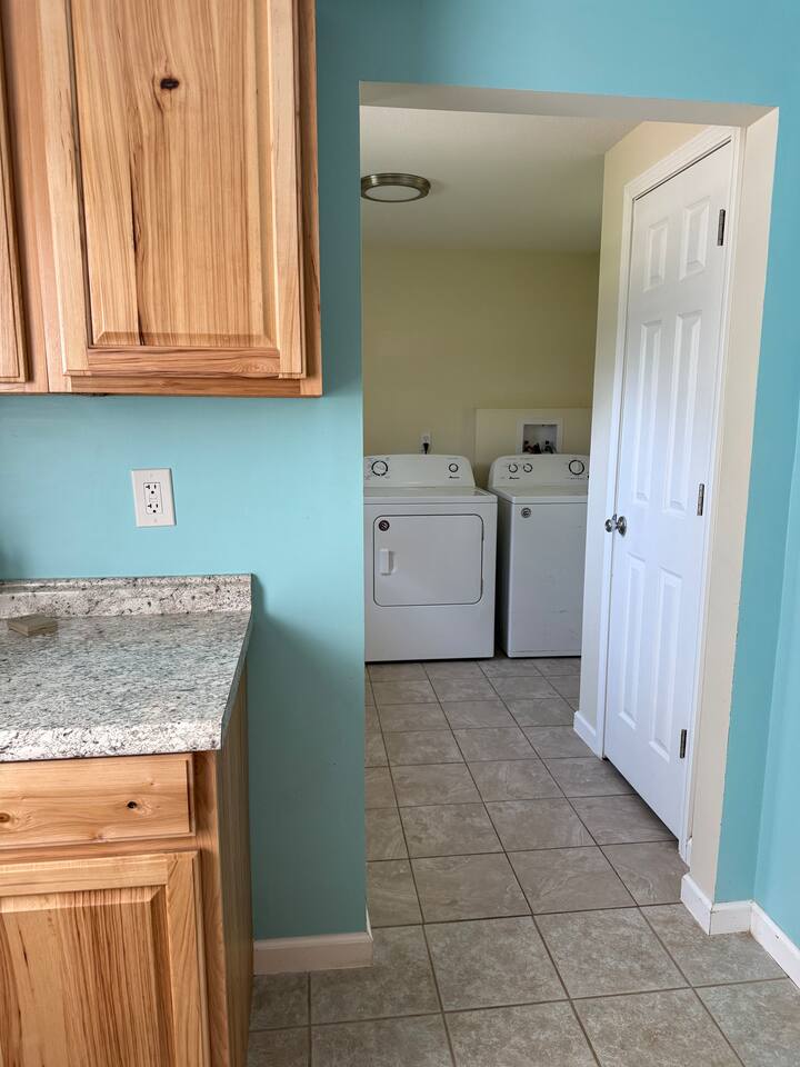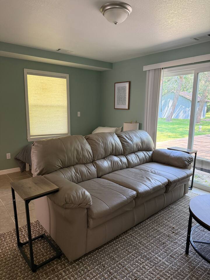 When you consider a one bedroom house you are probably not picturing this spacious house. It boasts a large mudroom/laundry room, full kitchen, large living space, large bathroom, good size bedroom, a two car garage, and fenced in area for your pup. The kitchen is fully equipped with everything you might need to stay as long as you need. The living room includes a smart TV and large couch that pulls out into a full sized bed. With a huge backyard; this home is secluded yet close to everything.