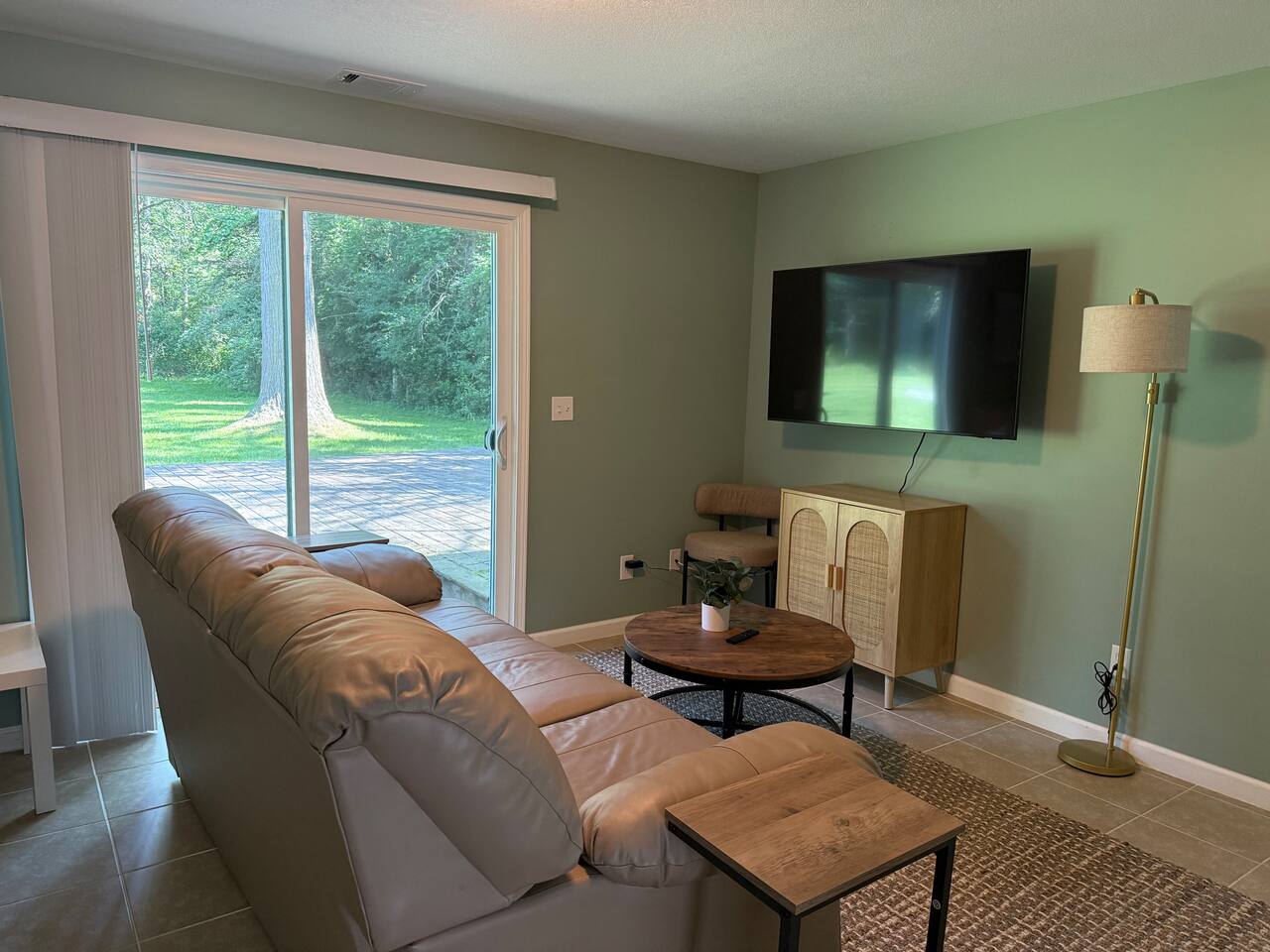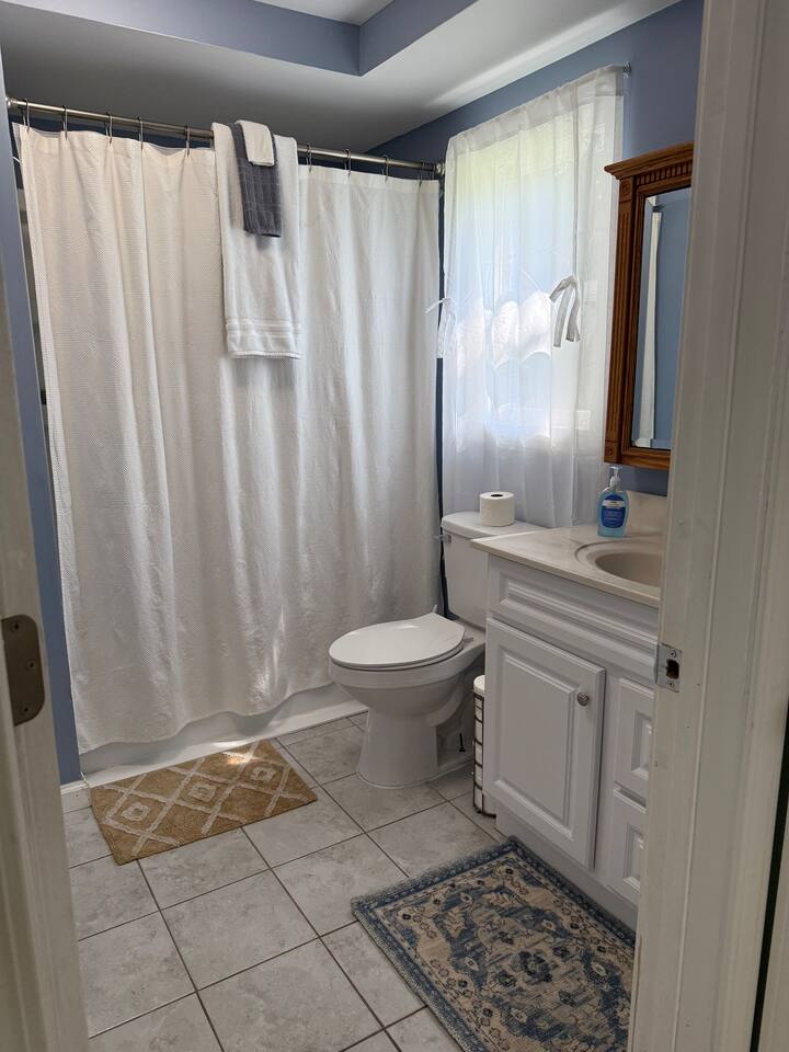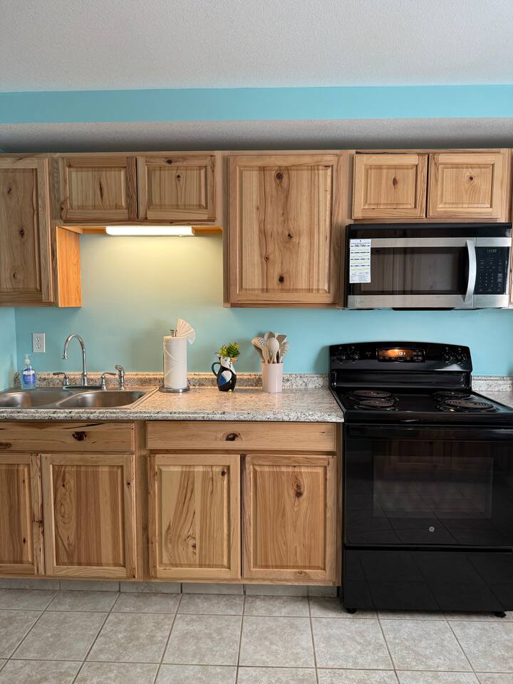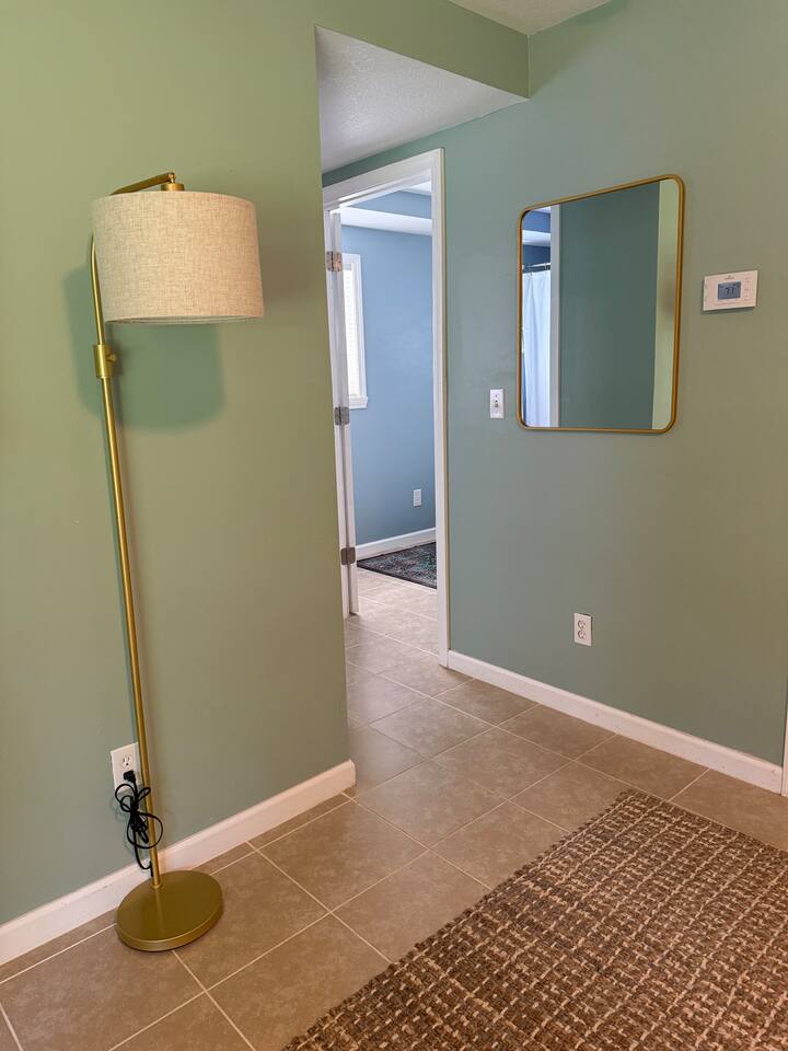When you consider a one bedroom house you are probably not picturing this spacious house. It boasts a large mudroom/laundry room, full kitchen, large living space, large bathroom, good size bedroom, a two car garage, and fenced in area for your pup. The kitchen is fully equipped with everything you might need to stay as long as you need. The living room includes a smart TV and large couch that pulls out into a full sized bed. With a huge backyard; this home is secluded yet close to everything.